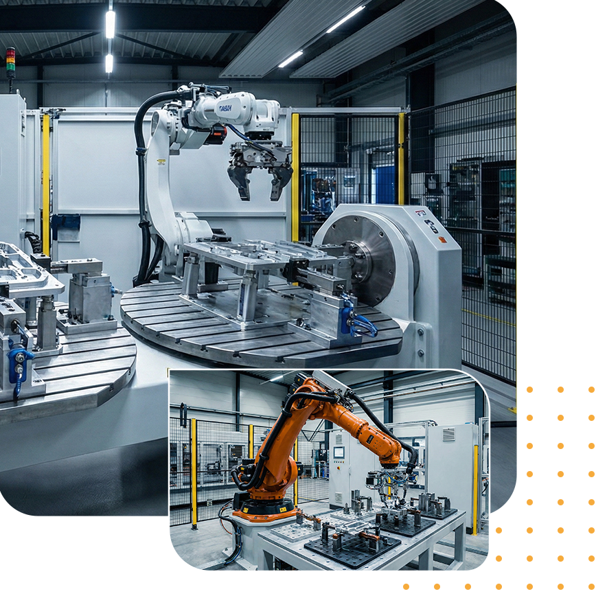 Root Engineering konzipiert robotische Vorrichtungssysteme, die eine exakte und wiederholbare Positionierung von Bauteilen in automatisierten Produktionsprozessen sicherstellen.