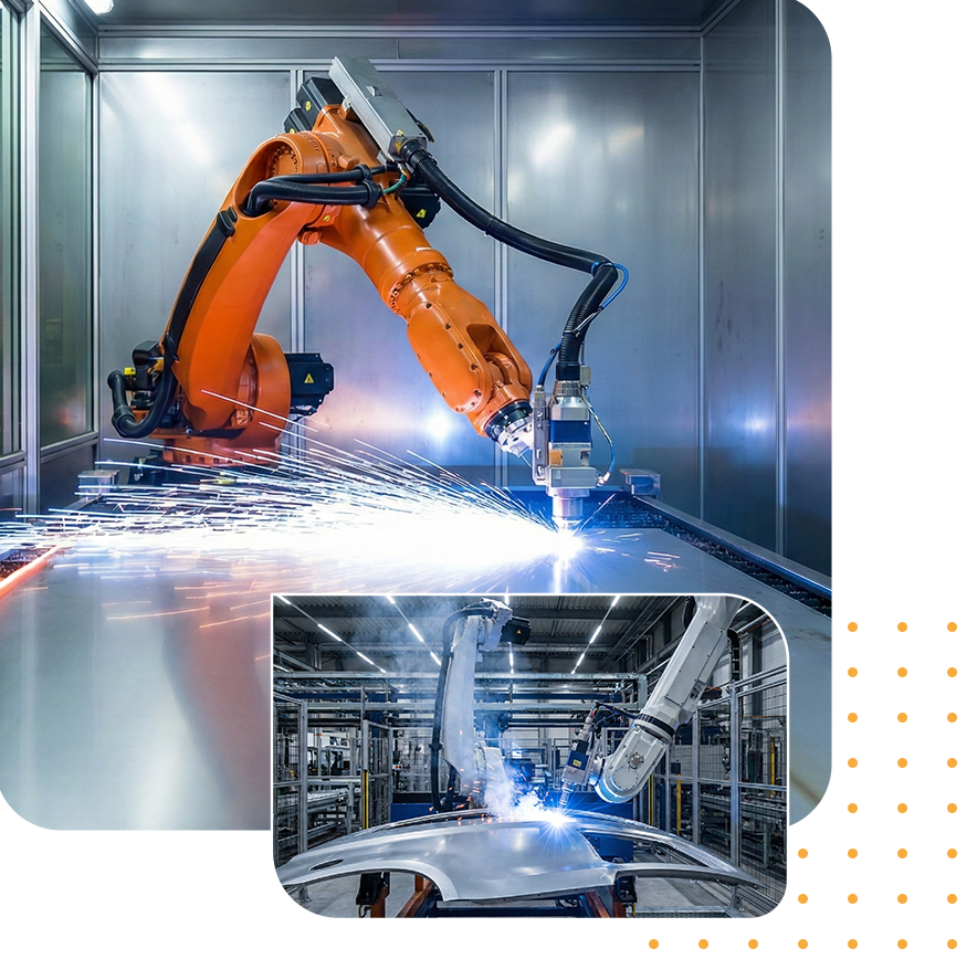 Robotic laser cutting is a system where a fiber laser cutting unit is integrated with an industrial robot arm to automatically perform contour cutting, piercing, and trimming operations on 2D or 3D parts.